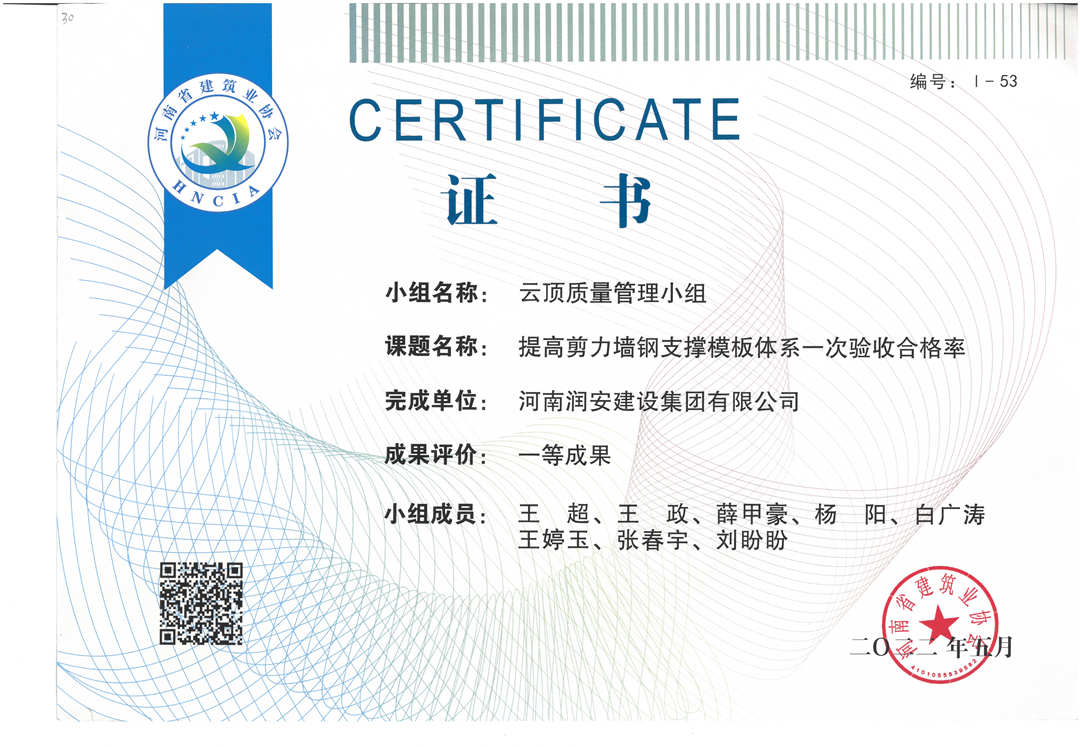 近期,集團(tuán)公司承建的多個(gè)項(xiàng)目捷報(bào)頻傳,先后有“林州碧桂園?林語(yǔ)印象項(xiàng)目”,被評(píng)為2022年上半年安陽(yáng)市建筑工程質(zhì)量標(biāo)準(zhǔn)化示范工地;潤(rùn)安楓林臺(tái)1-3、5-9號(hào)樓、林州碧桂園?天璽7號(hào)樓榮獲2022年度安陽(yáng)市殷都杯工程獎(jiǎng)。同時(shí),吾悅鴻城質(zhì)量管理小組、云頂質(zhì)量管理小組、璽悅質(zhì)量管理小組申報(bào)的三項(xiàng)課題均被河南省建筑業(yè)協(xié)會(huì)評(píng)為一等成果。